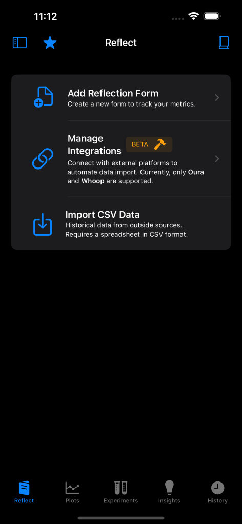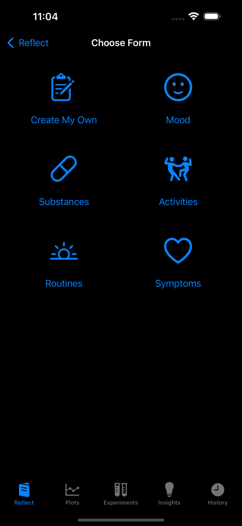 icon. If you want to go back later and add more metrics to your form, you may edit it by swiping right on the Mood Reflection name on the Reflect tab and pressing