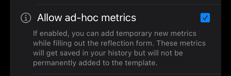 Ad-hoc metrics are ones you can record on-the-fly without having them as part of your Reflection Form. They’re useful for unplanned recordings that aren’t very common.