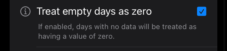 Filling out your metrics in a given Reflection can be optional. When toggled ON this setting applies default value treatment to metrics that are not filled out in a Reflection that has been recorded. For example, if you fill out that you had 1000 mg of Vitamin C in your Supplements Reflection but didn’t fill out a value for Vitamin D (mcg), toggling this setting on will result in analysis and plots that assume you had 0 mcg Vitamin D for that Reflection. This setting is just the default for metrics in this Reflection. When you start to add metrics, this setting can be overridden.